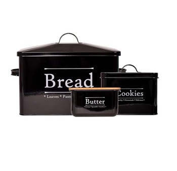 Caja grande de pan de 3 piezas, juego de botes para galletas y platos de mantequilla para encimera de cocina, cajas y contenedores de almacenamiento